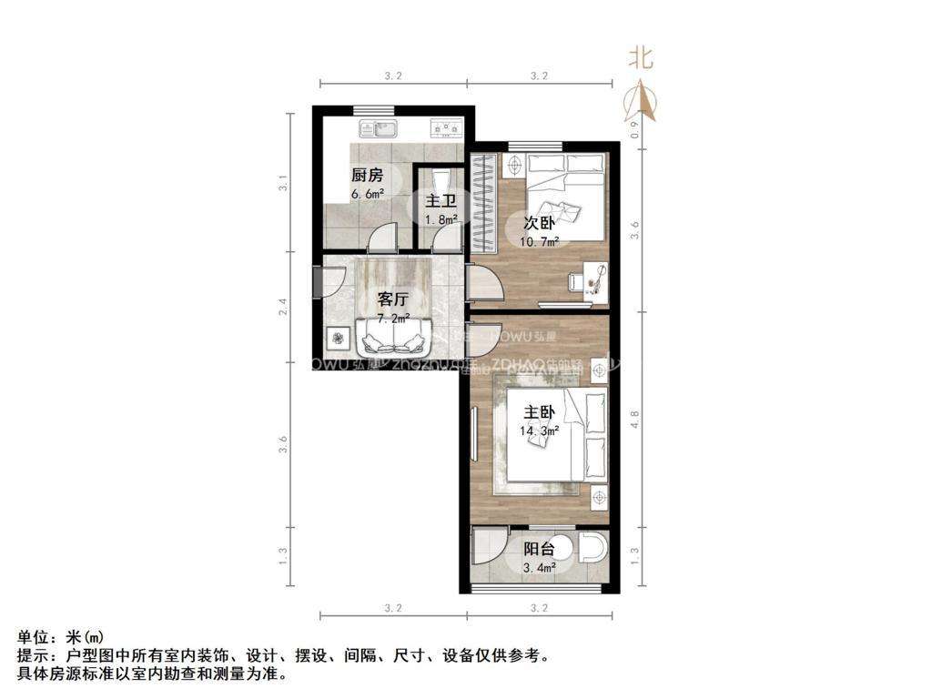 朝向南北 建筑面积63㎡