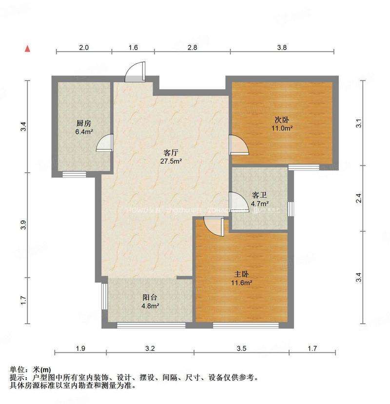 厅室2室2厅1卫1阳台