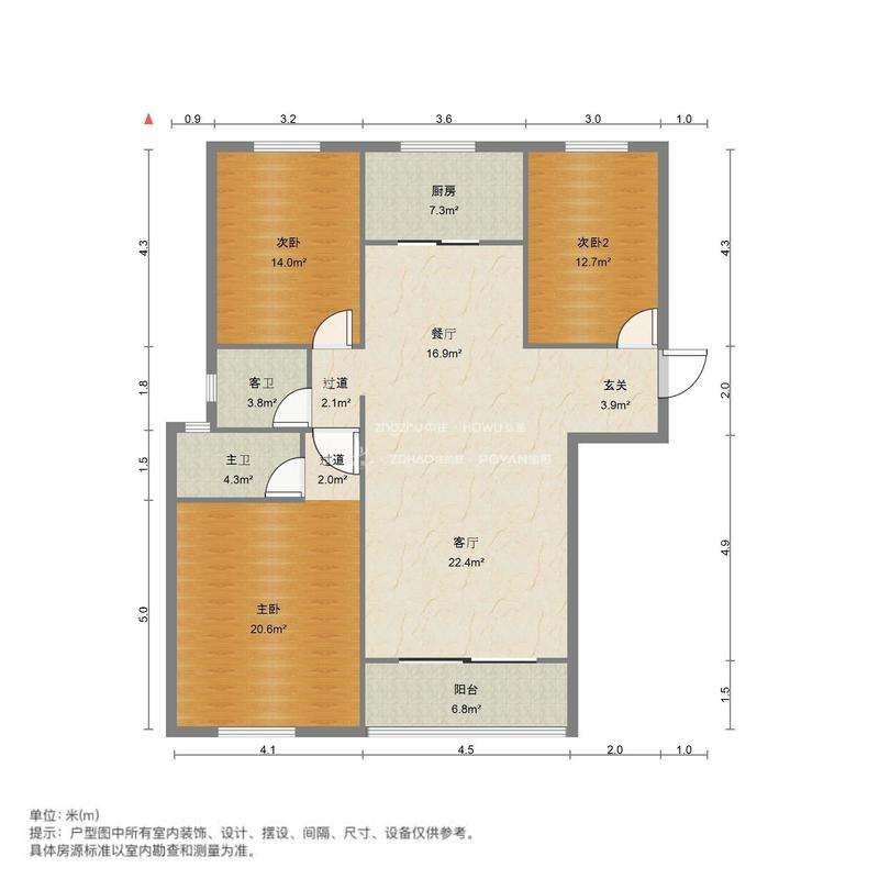 2、户型优势:三室二厅二卫,南北卧室,客厅方正好用,大院传达,安全性高!
