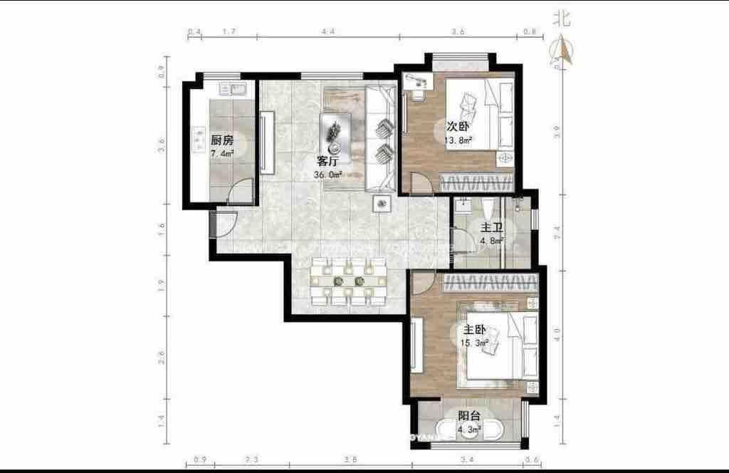 2、户型优势:室厅,南北卧室,客厅方正好用,单元对讲门,大院传达,安全性高!