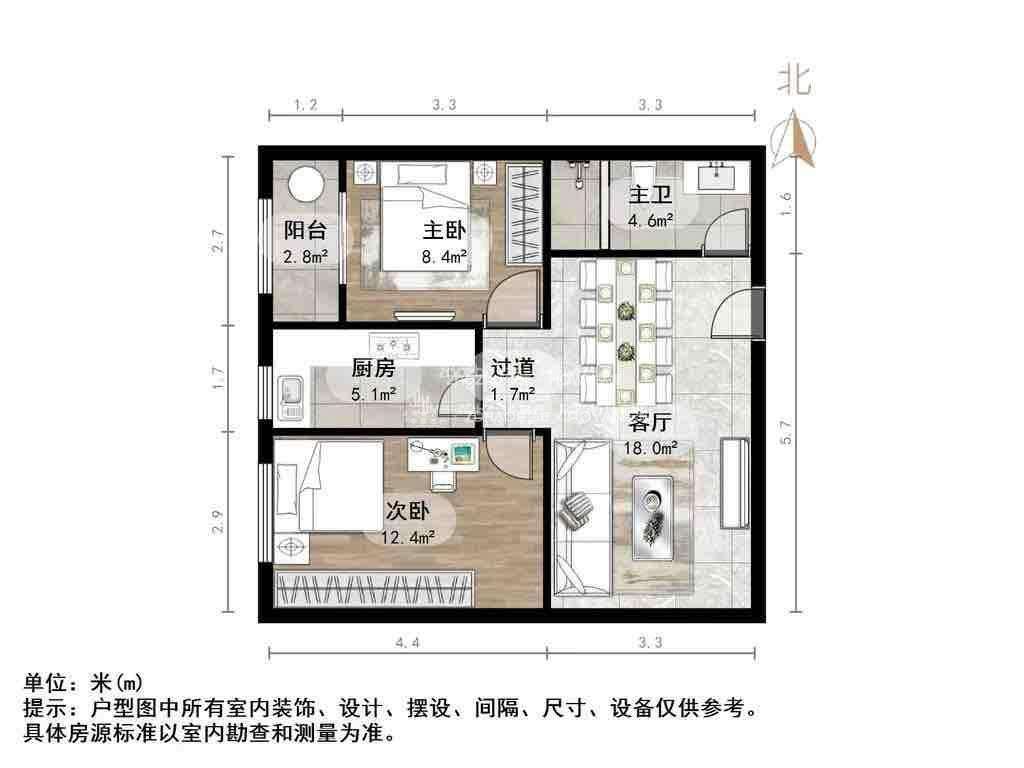 厅室2室1厅1卫1阳台
