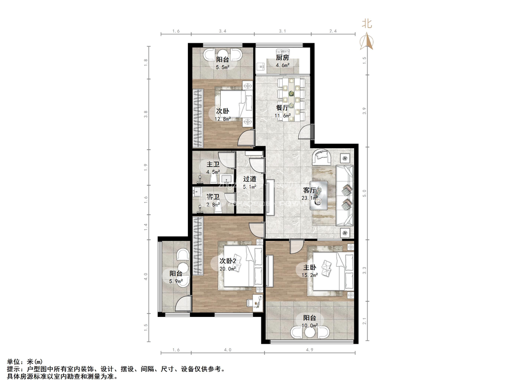 厅室3室2厅1卫1阳台