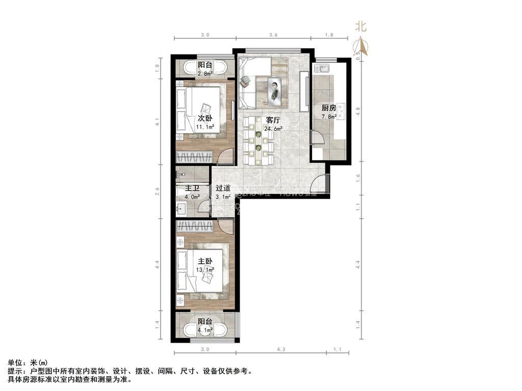 朝向南北 建筑面积94㎡