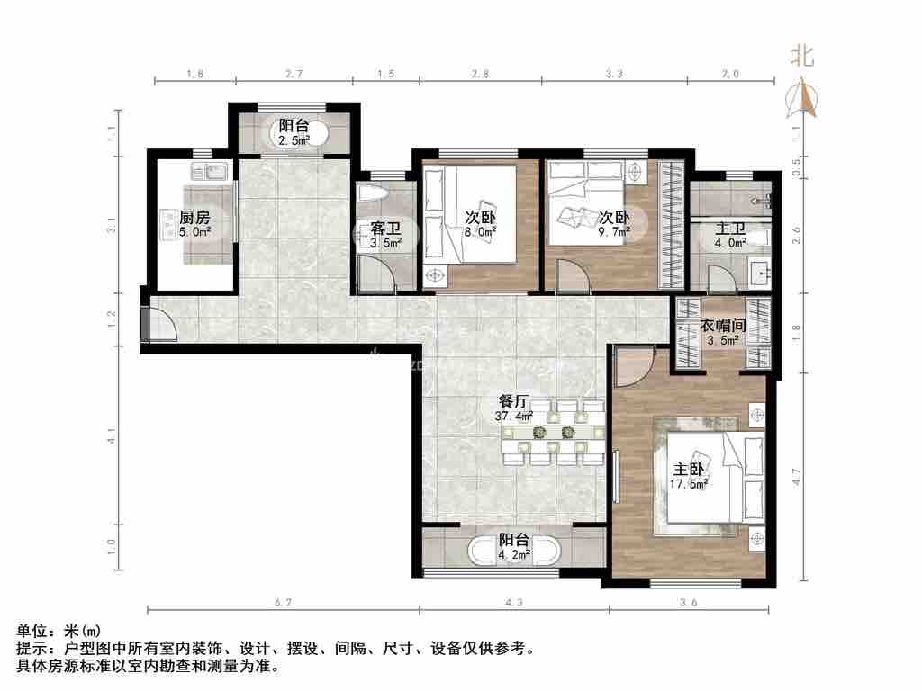 厅室3室2厅2卫2阳台