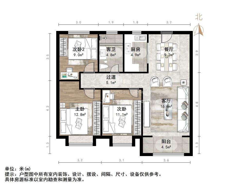 朝向南北 建筑面积111㎡