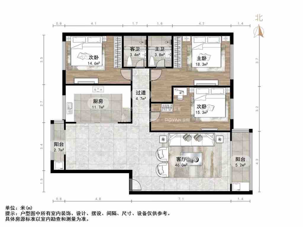 厅室3室2厅2卫0阳台