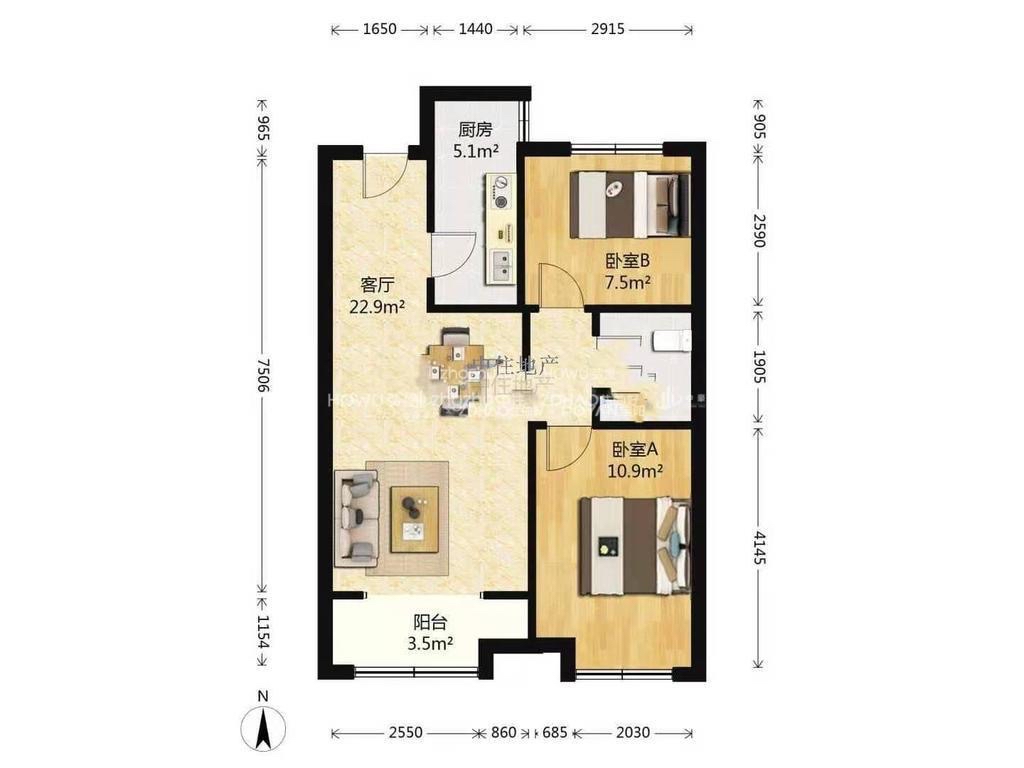 厅室2室2厅1卫1阳台