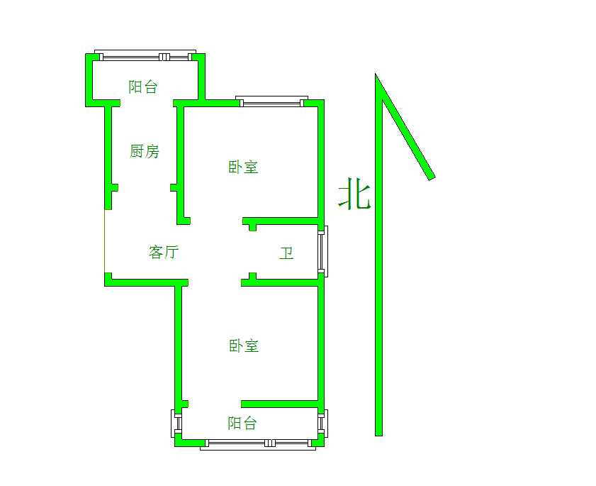厅室2室1厅1卫1阳台