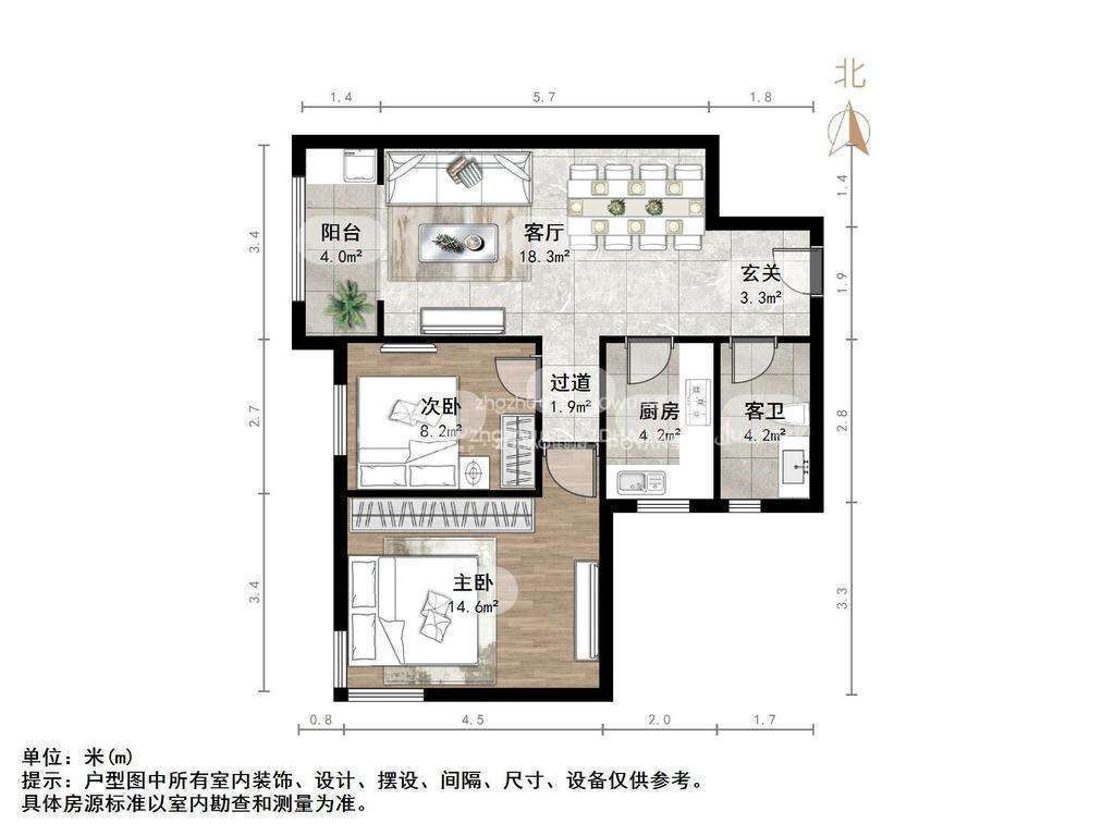 1、电梯双气,温馨两居室