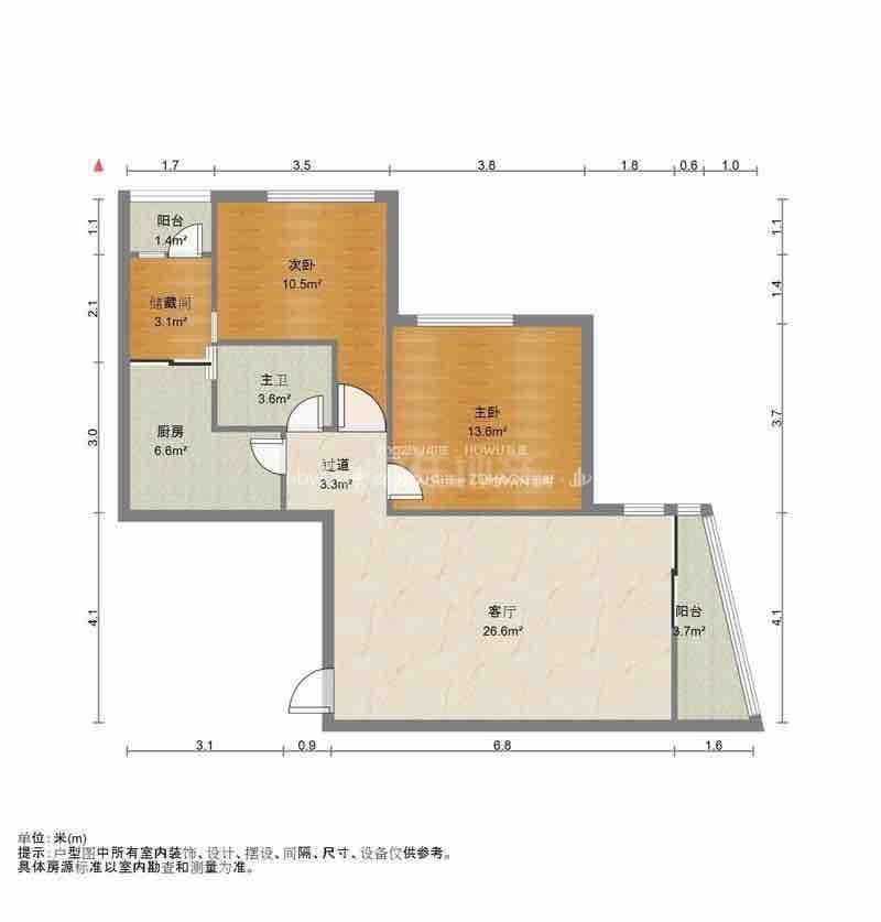 厅室2室2厅1卫3阳台