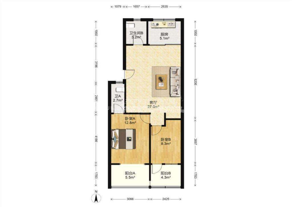 厅室2室2厅2卫1阳台
