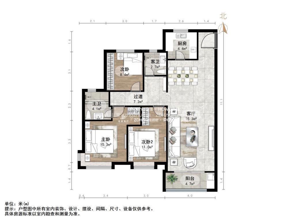 厅室3室2厅2卫1阳台
