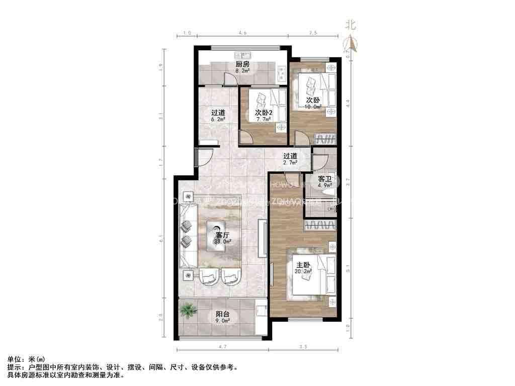 厅室3室2厅1卫2阳台