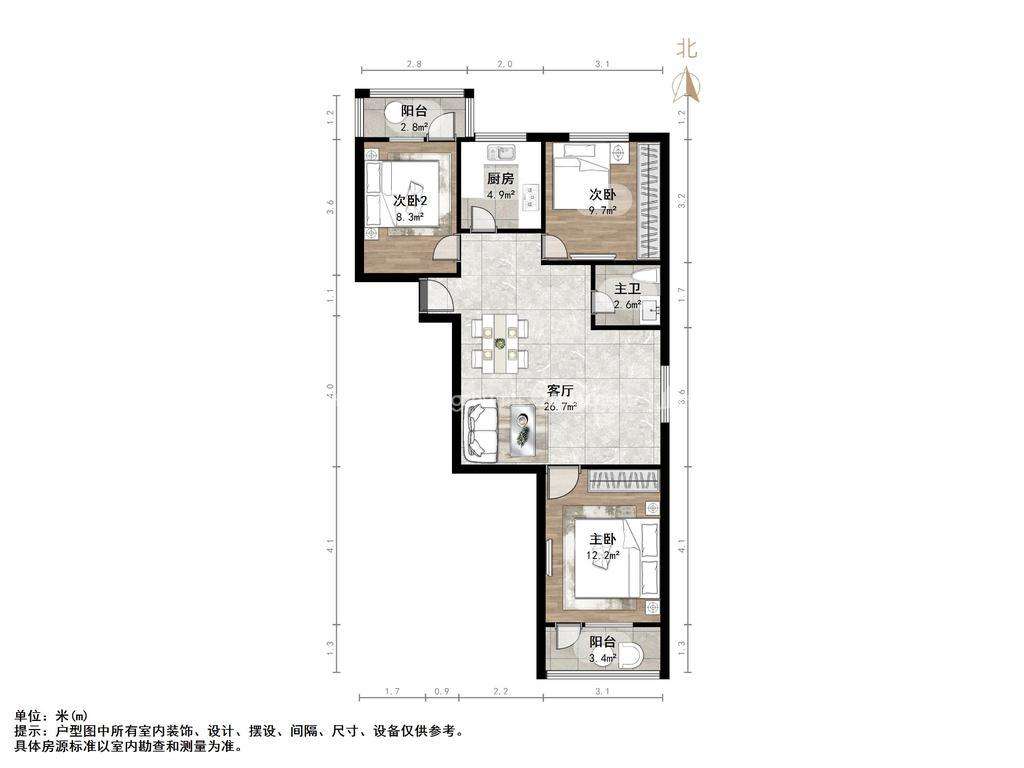 朝向南北 建筑面积88㎡