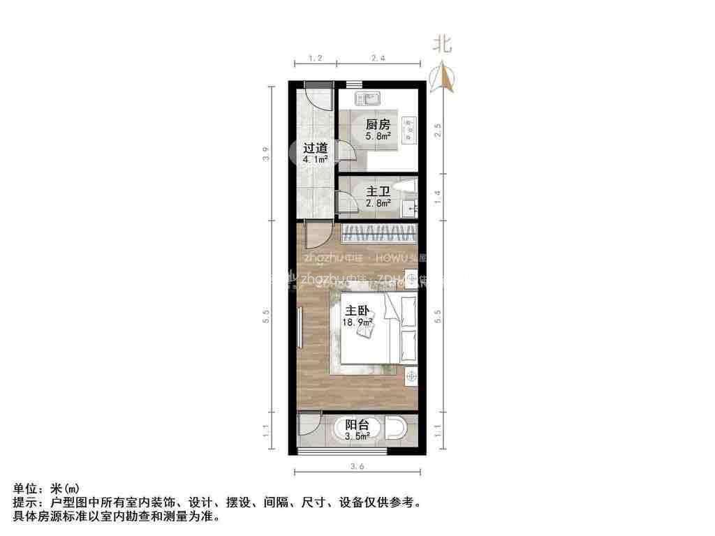厅室1室1厅1卫1阳台