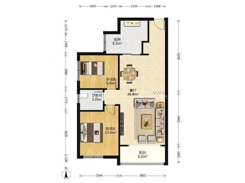 厅室2室2厅1卫1阳台