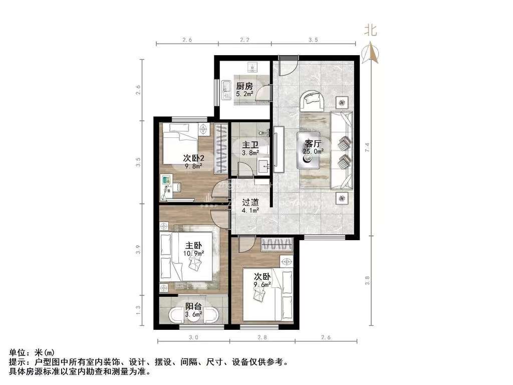 厅室3室2厅1卫1阳台