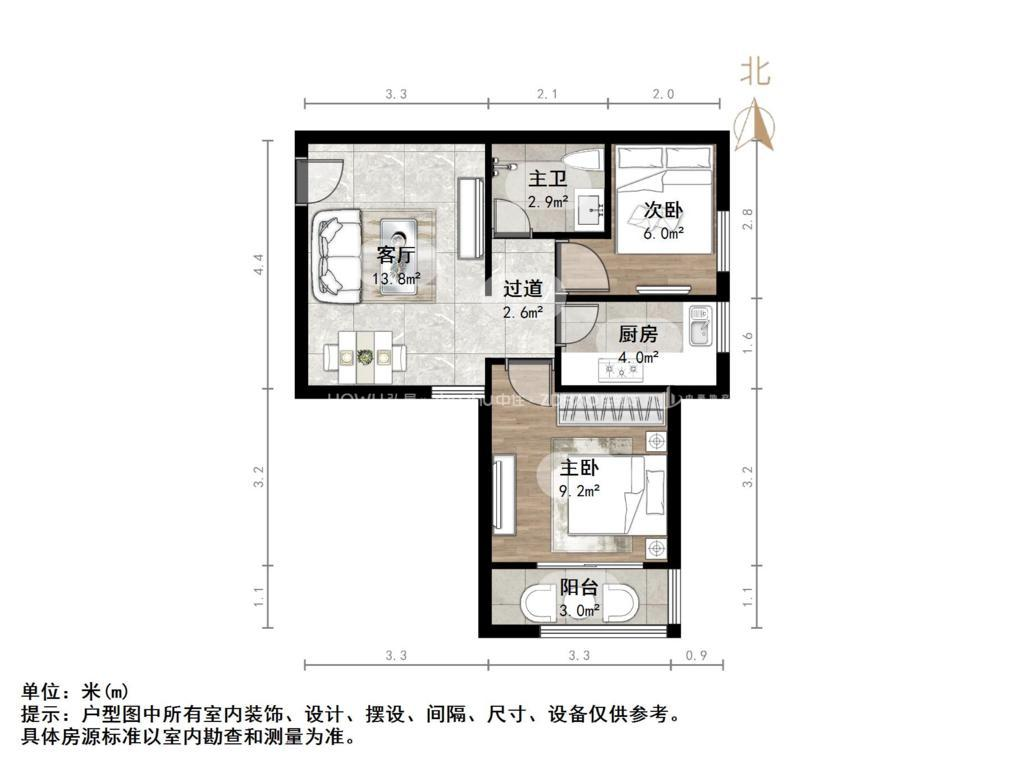 厅室2室1厅1卫1阳台