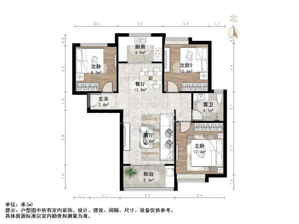 朝向南北 建筑面积99.46㎡