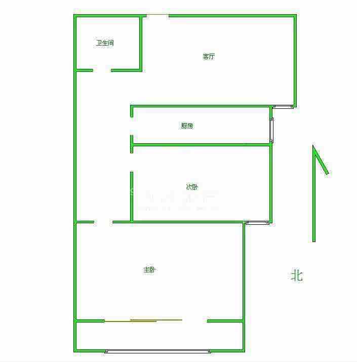 【户型】:两室一厅一卫,南北卧室,户型方正合理。