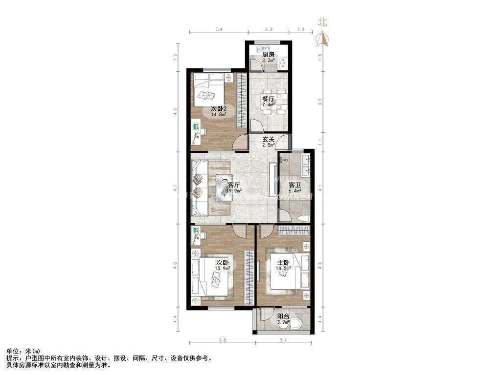 朝向南北 建筑面积110㎡