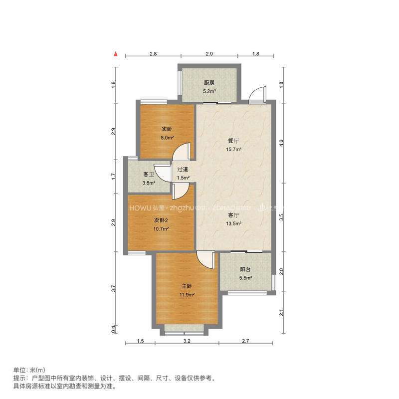 厅室3室2厅1卫2阳台