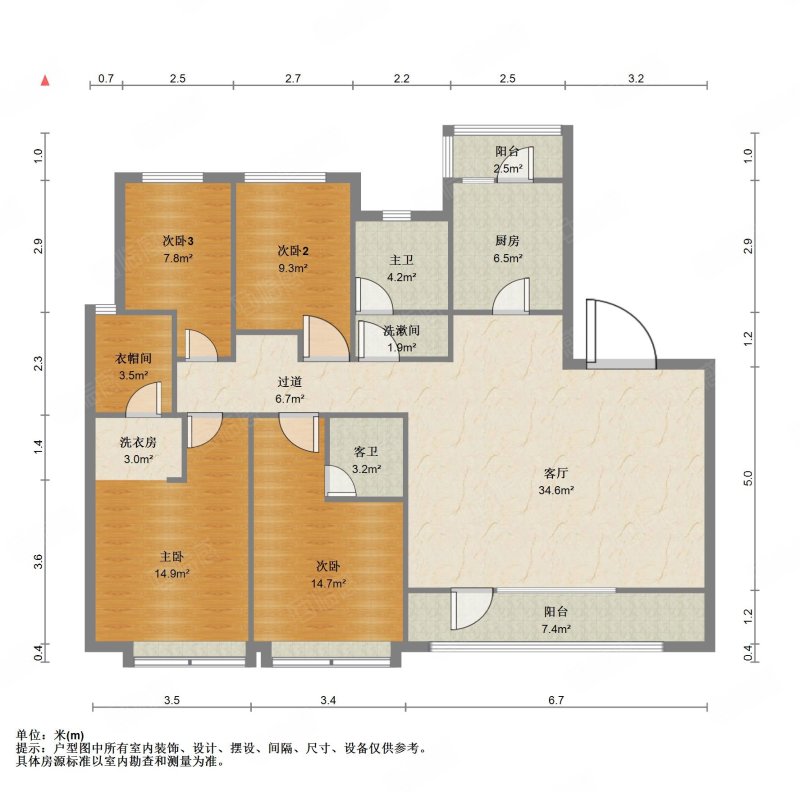 厅室4室2厅3卫2阳台