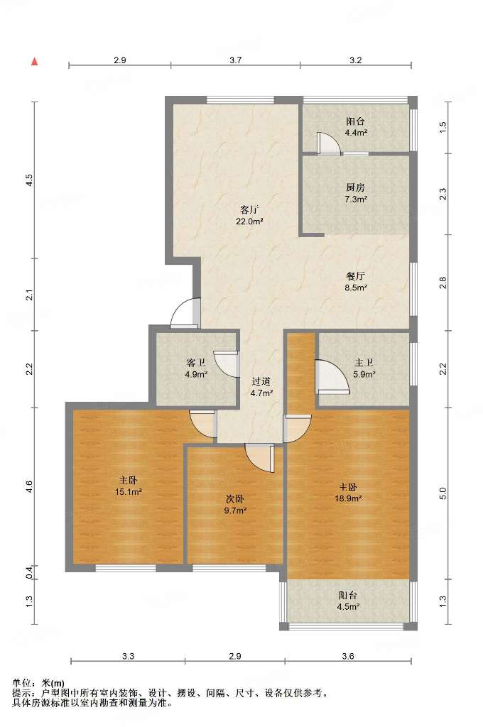 厅室3室2厅2卫1阳台