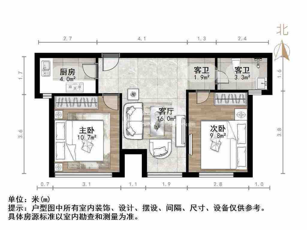 厅室2室2厅1卫1阳台