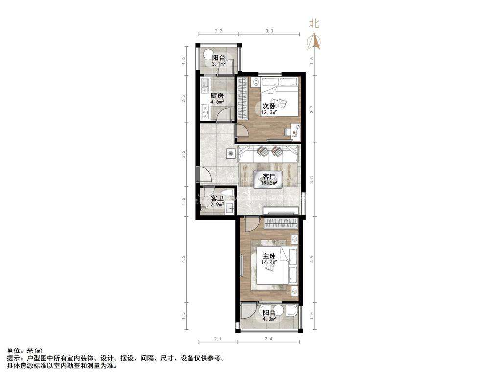 朝向南北 建筑面积72.1㎡