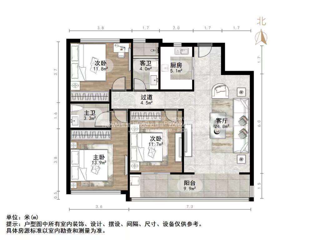厅室3室2厅2卫1阳台