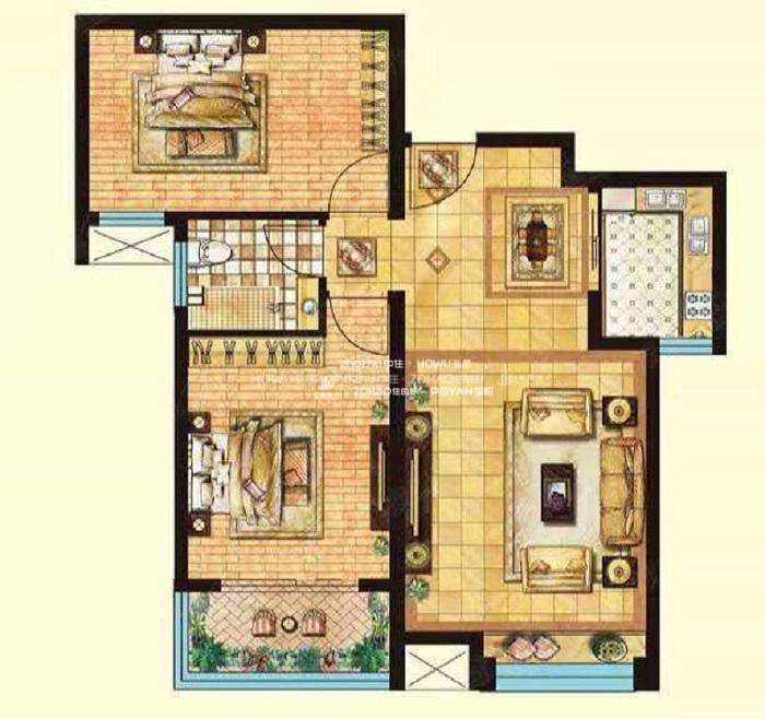 厅室2室2厅1卫1阳台