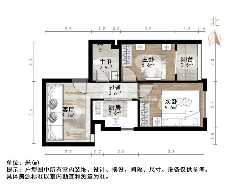 厅室2室1厅1卫1阳台