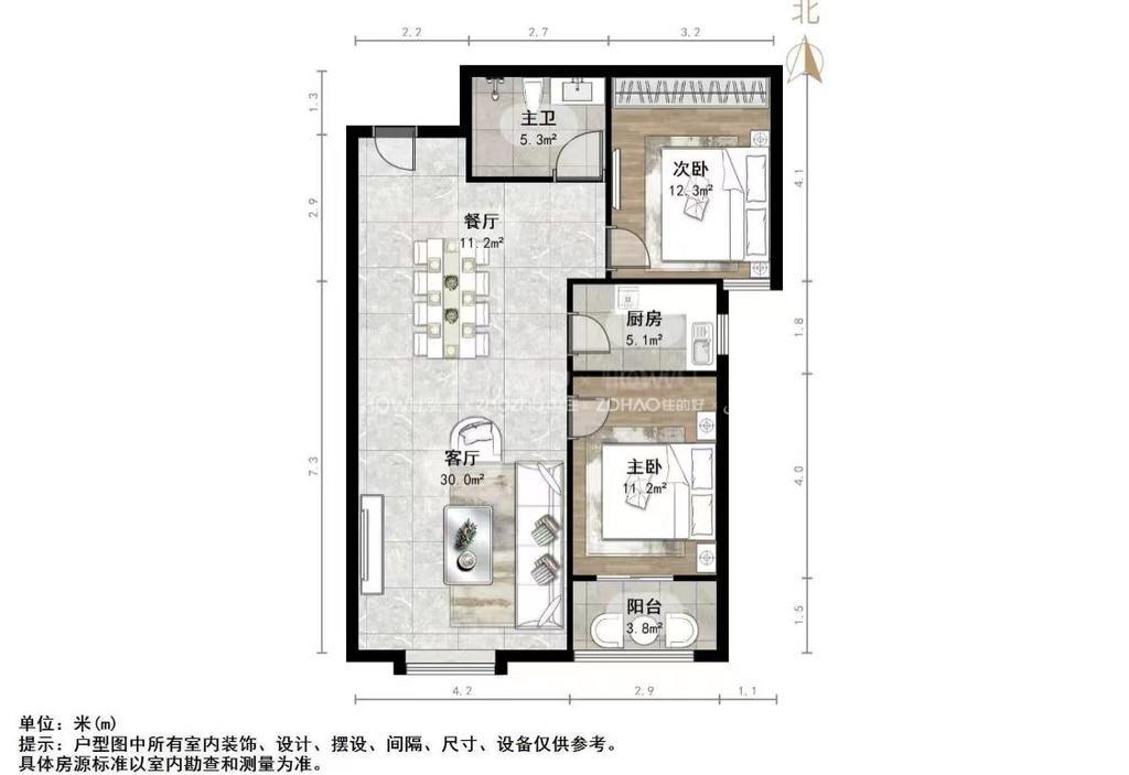 厅室2室2厅1卫1阳台