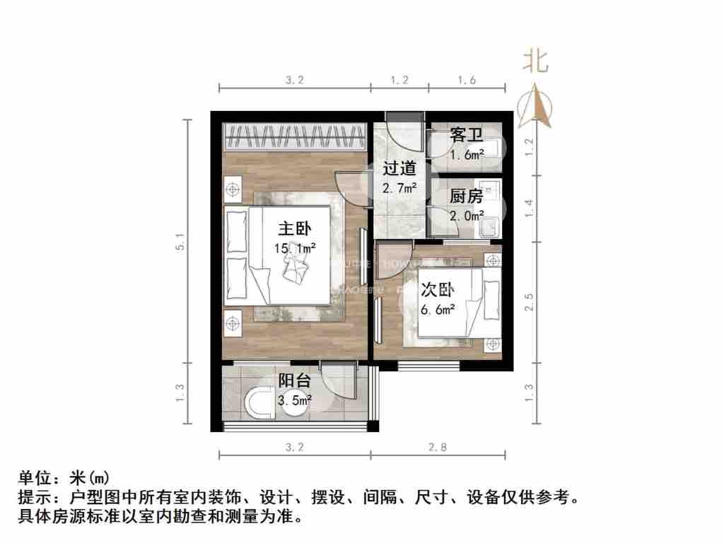 厅室2室0厅1卫1阳台