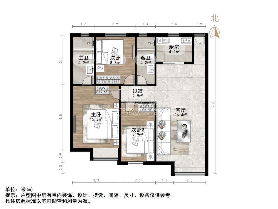 朝向南北 建筑面积113㎡