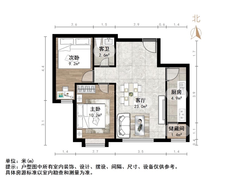朝向南北 建筑面积80㎡