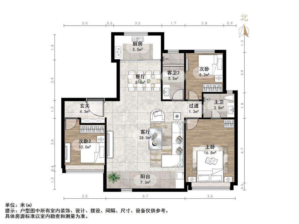厅室3室2厅2卫1阳台