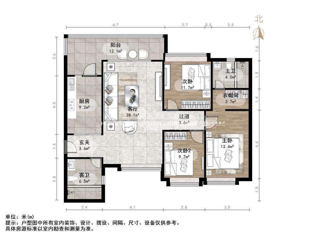 厅室3室2厅2卫0阳台