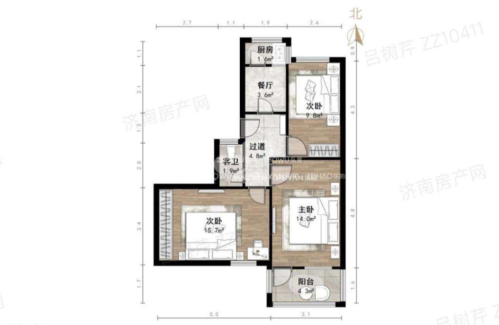 厅室3室0厅1卫1阳台