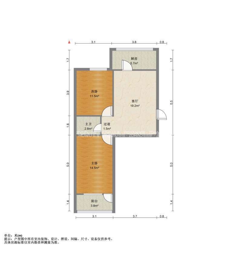 厅室2室1厅1卫1阳台