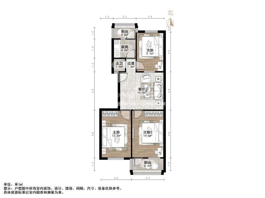 朝向南北 建筑面积90㎡
