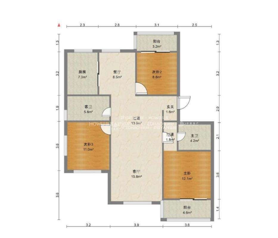 厅室3室2厅2卫1阳台