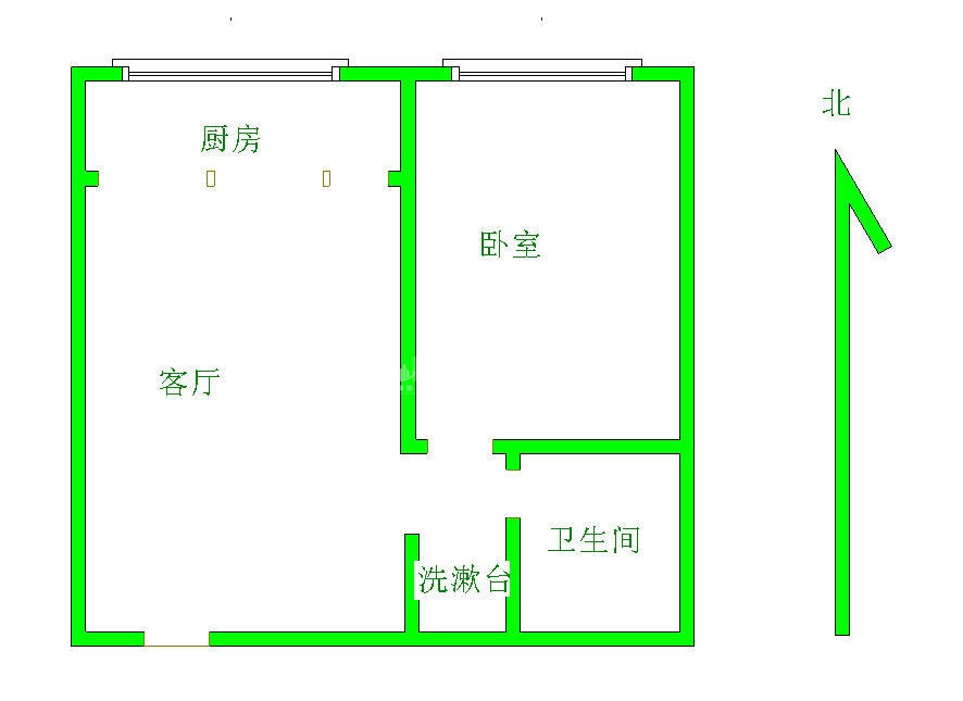 2、户型优势:1室1厅,南北卧室,客厅方正好用,单元对讲门,大院传达,安全性高!
