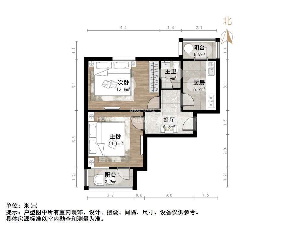 朝向南北 建筑面积58㎡