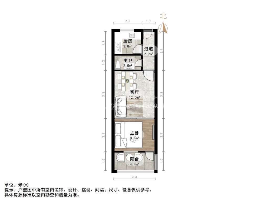 厅室1室1厅1卫1阳台