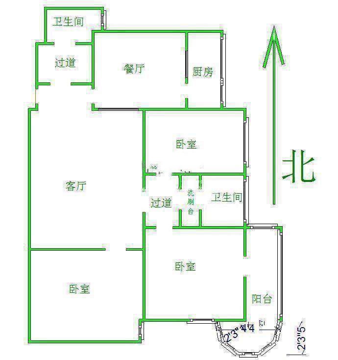 厅室3室2厅2卫1阳台