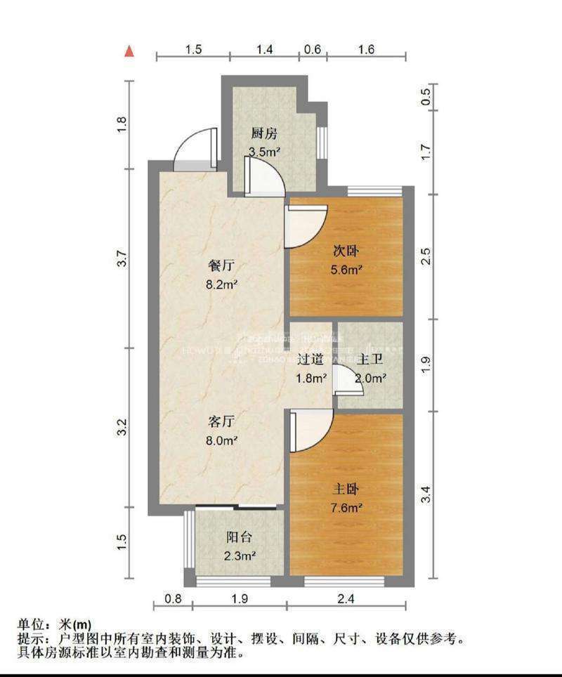 厅室2室1厅1卫1阳台