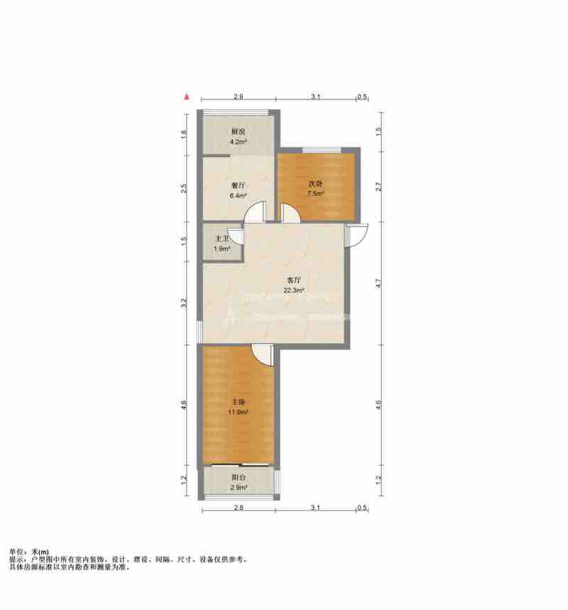 朝向南北 建筑面积74㎡