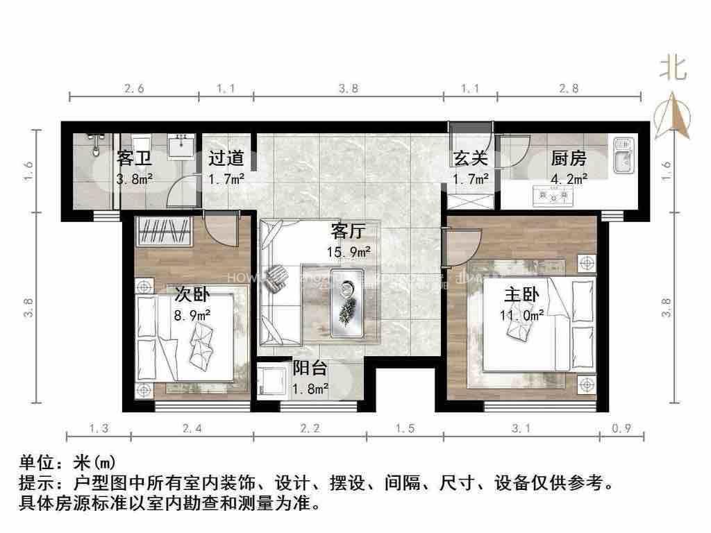 厅室2室1厅1卫1阳台